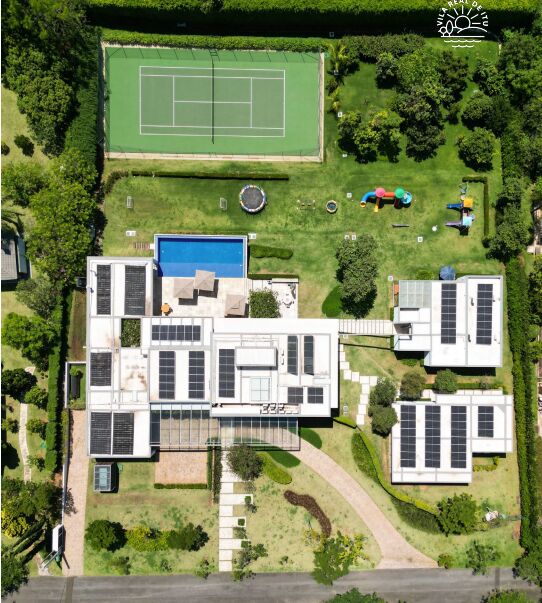 Energia solar para aquecimento da água e fotovoltáica para luz.