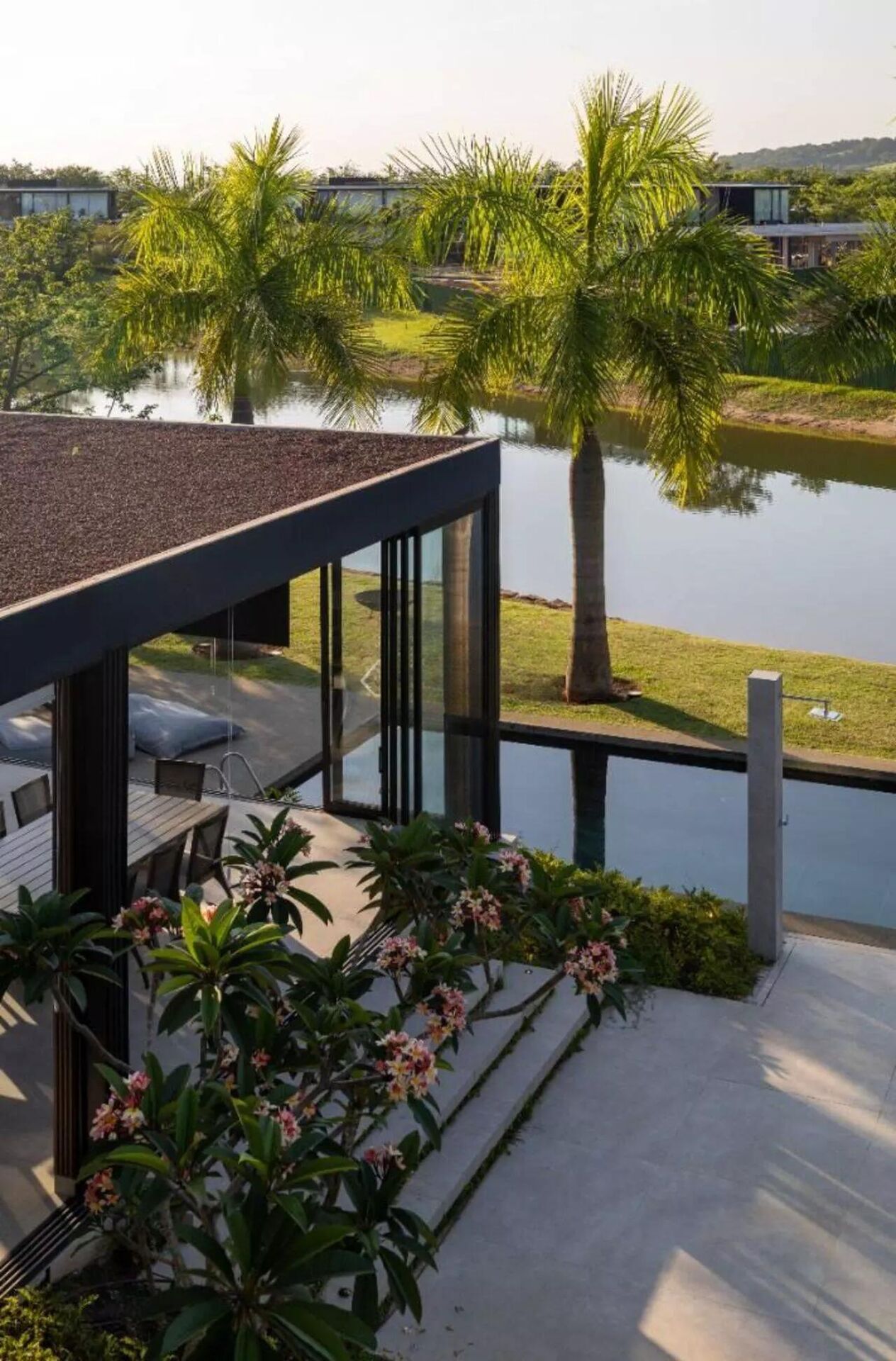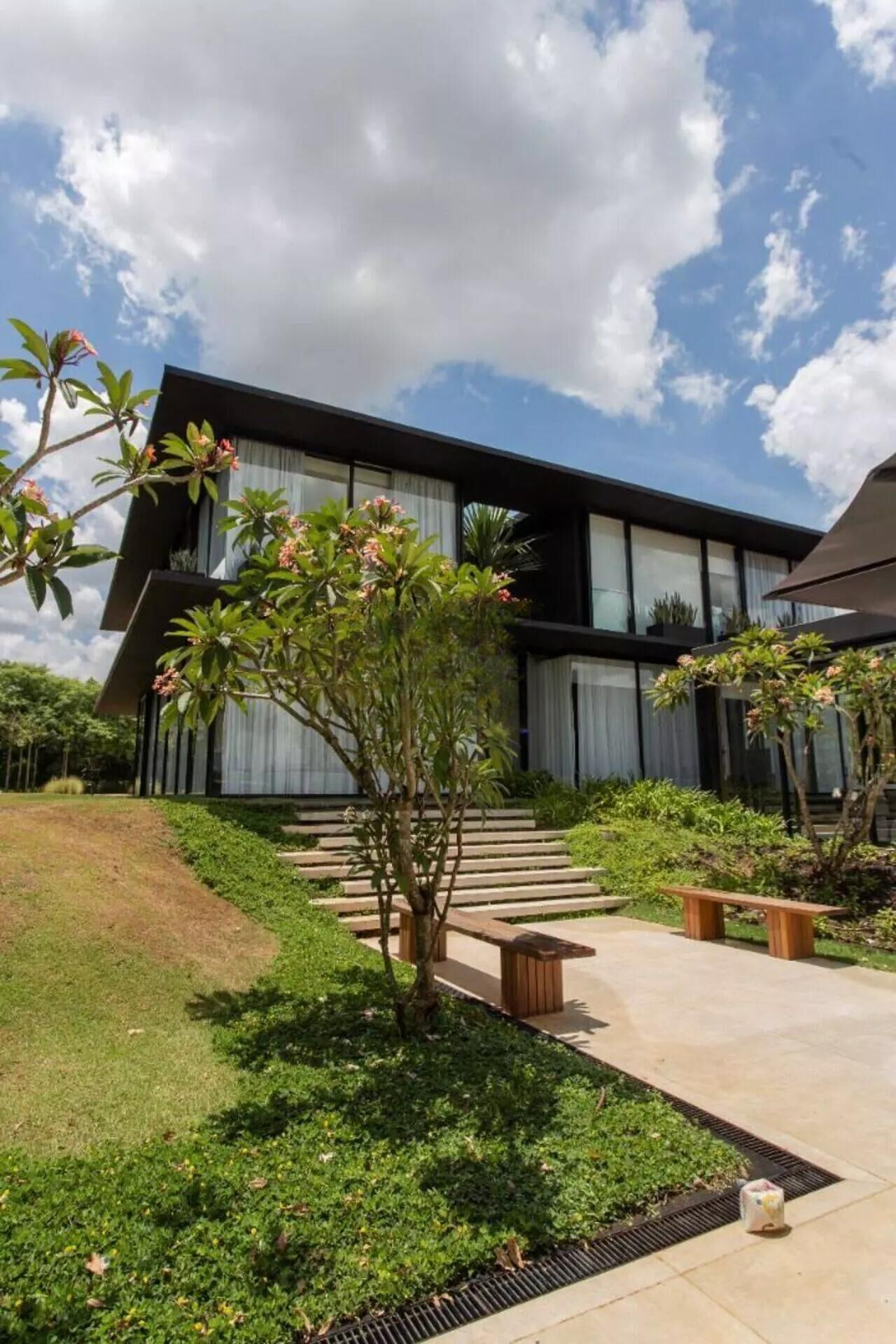 Localizado em frente a um dos lagos da Fazenda Boa Vista, a residência dispõe de um design moderno e minimalista. Clássico das Sports House.