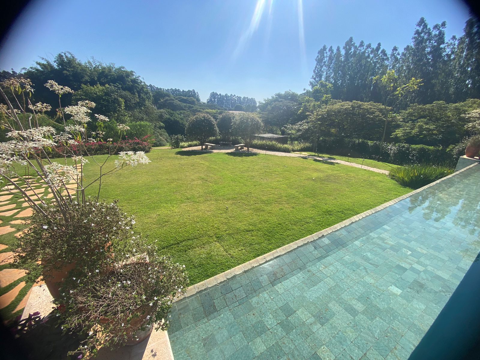 - Piscina aquecida rodeada por paisagismo exuberante