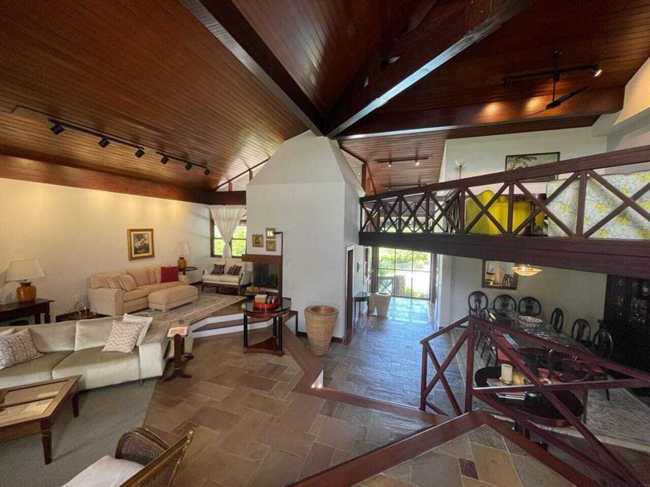 Linda casa de Campo Completa e mobiliada ,seu refúgio dispõe de uma arquitetura campestre totalmente mobiliada e decorada, possibilitando aos moradores e convidados experimentarem o aconchego do campo! A residência tem fundo para o lago, uma vista encantadora e não há vizinhos próximos. Oferece QtdSalass de estar e jantar, lareira, lavabo e cozinha. Ao todo são 4 suítes confortáveis para acomodar toda família e amigos. Para o lazer e bem-estar temos um anexo completo disposto de QtdSalass, cozinha gourmet com forno de pizza à lenha, lareira, sauna úmida e varanda voltada para bela piscina! O deslumbrante paisagismo envolve toda extensão da residência., piscina amplo espaço gourmet. São 3 terrenos totalizando 7.000m2 de área total.